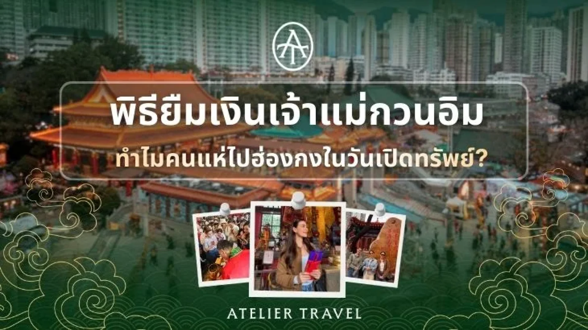 ATELIER TRAVEL จัดทริป พิธียืมเงินเจ้าแม่กวนอิม ที่ฮ่องกง ในวันเปิดทรัพย์อย่างต่อเนื่องทุกปี โดยเน้นการทำพิธีอย่างถูกต้องตามธรรมเนียม มีทีมงานประสานงานกับวัด และมีซินแซช่วยแนะนำขั้นตอนอย่างใกล้ชิด
